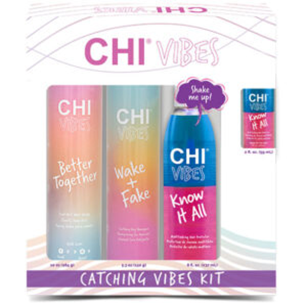 Elevate your hair routine with the CHI Catching Vibes Kit, a versatile set designed for all hair and scalp types. This spray-based kit offers medium hold while delivering shine, softness, and volume. Protect your hair from heat and color fading, define natural waves, and prevent split ends—all while ensuring easy combing, smoothness, and anti-static benefits. Perfect for achieving salon-quality style effortlessly, this kit simplifies hair care with professional-grade results every day.