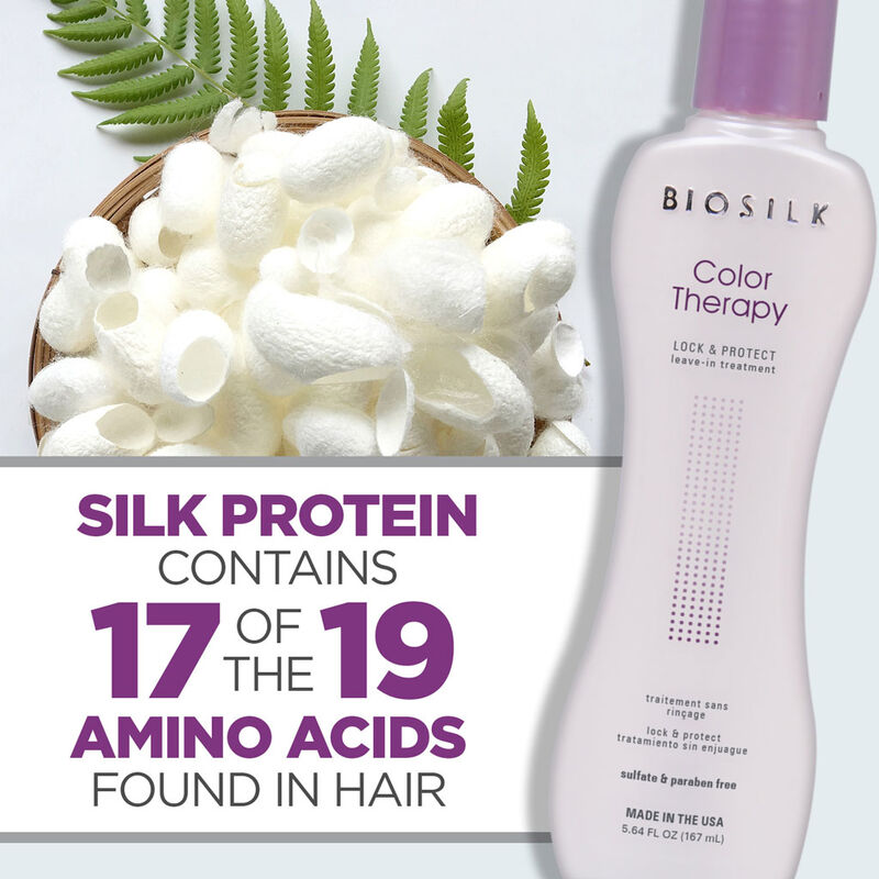 BioSilk Color Therapy Lock & Protect Leave-In Treatment (5.64 oz / 167 ml) is expertly crafted to safeguard color-treated hair from the harsh effects of UV rays and environmental damage. Enriched with nourishing Maracuja (passion fruit seed oil) and restorative silk proteins, it seals the hair cuticle to lock in color and strengthen each strand. Antioxidant-rich red tea extract boosts protection against fading, maintaining rich, vibrant hues longer. Lightweight and easy to apply, this leave-in treatment delivers daily defense and enhances shine, leaving your hair smooth, resilient, and beautifully vibrant every day. Preserve your color’s brilliance with consistent use.